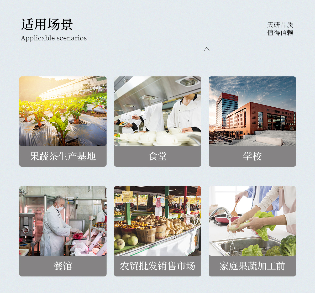 廣泛應(yīng)用于主要用于蔬菜、水果、茶葉、糧食、農(nóng)副產(chǎn)品等食品中有機磷和氨基甲酸酯類農(nóng)藥殘留的快速檢測;此外還可用于果蔬茶生產(chǎn)基地和農(nóng)貿(mào)批發(fā)銷售市場現(xiàn)場檢測,餐館、學(xué)校、食堂、家庭果蔬加工前的安全速測等。