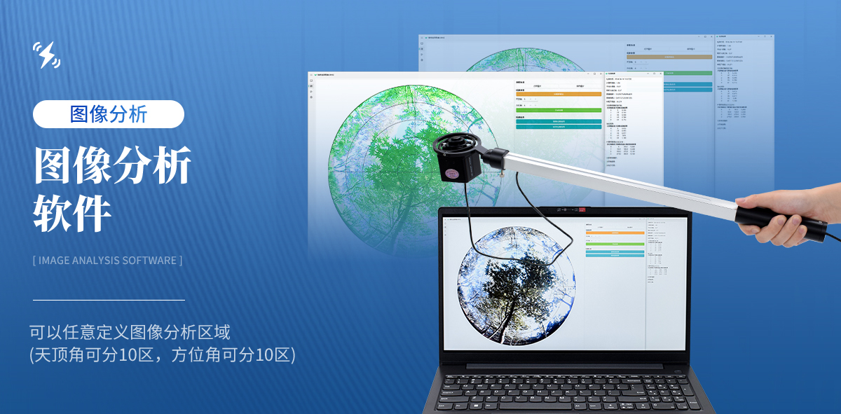 | 魚眼鏡頭可自動(dòng)保持水平狀態(tài):專門為植物冠層結(jié)構(gòu)測(cè)量設(shè)計(jì)的小型魚眼攝像鏡頭安裝在手持式萬(wàn)向平衡接頭上,可自動(dòng)保持鏡頭處于水平狀態(tài),無(wú)需三角架 | 魚眼鏡頭可以伸入至冠層中:鏡頭安裝在搖臂一端,由于小巧和帶有測(cè)量桿,可以方便地水平向前或垂直向上伸入到冠層不同高度處,快速地進(jìn)行分層測(cè)量,測(cè)出群體內(nèi)光透過(guò)率和葉面積指數(shù)垂直分布圖 | 圖像分析軟件:圖像分析軟件可以任意定義圖像分析區(qū)域(天頂角可分10區(qū),方位角可分10區(qū)) | 可屏蔽不合理冠層部分:對(duì)不同方向的冠層進(jìn)行區(qū)域性分析時(shí),可以任意屏蔽地物景象和不合理的冠層部分(如缺株、邊行問(wèn)題等)。對(duì)不同天頂角起始角和終止角的選擇,可以避開(kāi)不符合計(jì)算該冠層結(jié)構(gòu)參數(shù)的冠層孔隙條件,通過(guò)手動(dòng)調(diào)節(jié)閾值,可以更精準(zhǔn)的測(cè)量出葉面積指數(shù)等參數(shù) | 軟件只適配Windows 10及Windows 10以上系統(tǒng) |