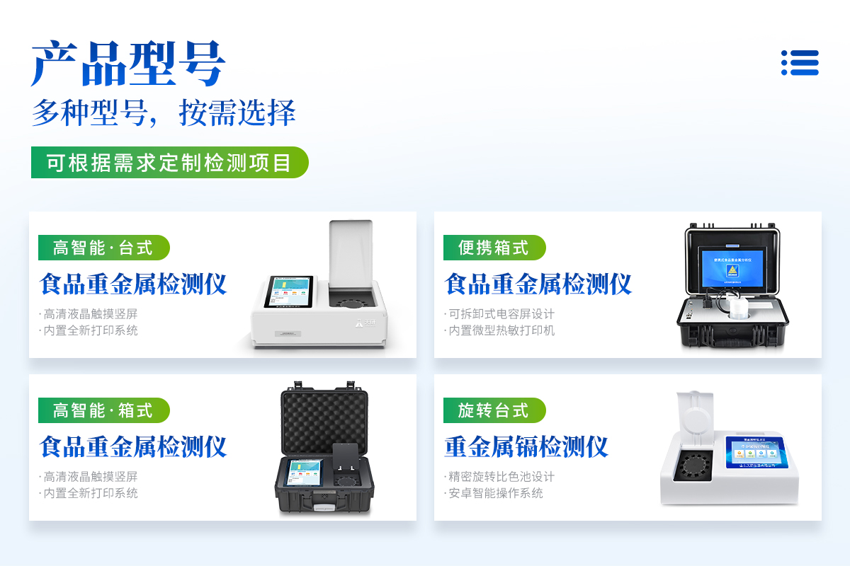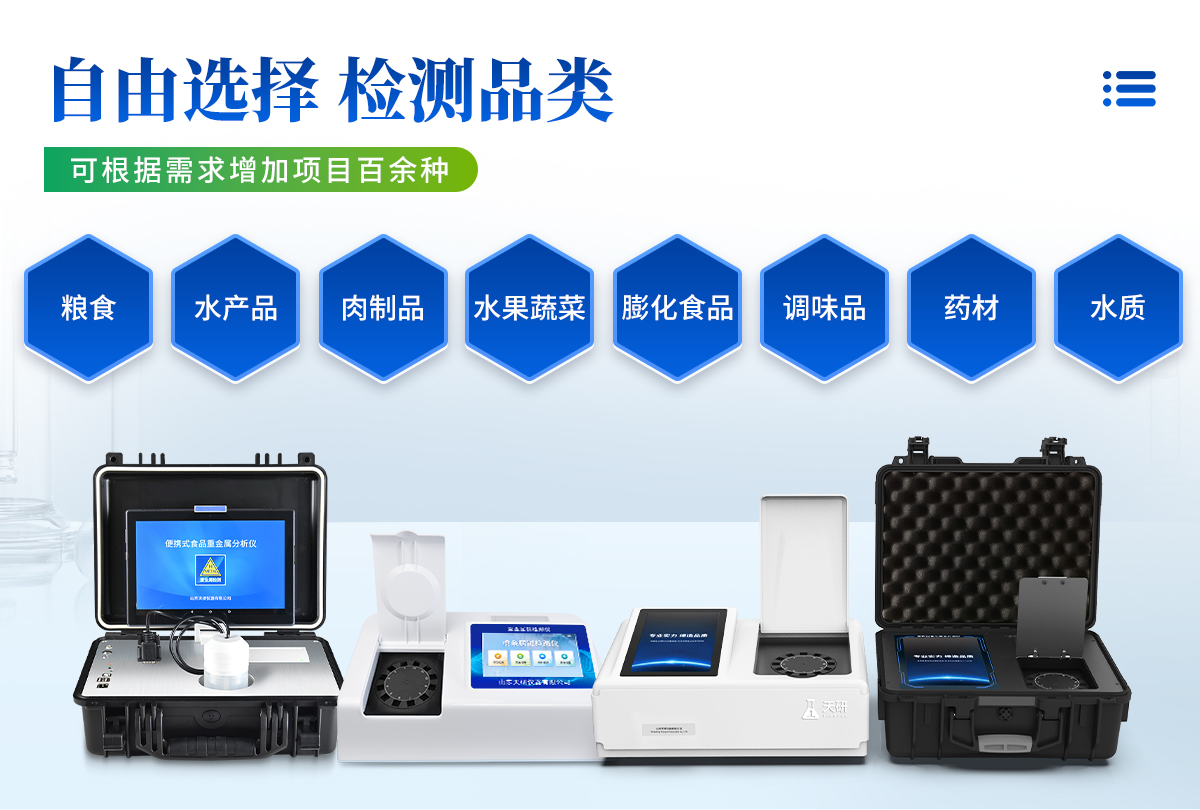 儀器用途:重金屬檢測儀可廣泛應用于大米、糧谷、果品、蔬菜、藥材、水質(zhì)、水產(chǎn)品中重金屬鎘的快速檢測,檢測項目可根據(jù)客戶的需求定制。技術(shù)參數(shù):儀器采用臺式一體化系統(tǒng)檢測技術(shù),將分光光度模塊、數(shù)字化管理模塊、無線通訊模塊高度集成于一體,同時預留升級檢測方法儀器檢測模塊標準化、智能化,檢測項目可隨意自由組合