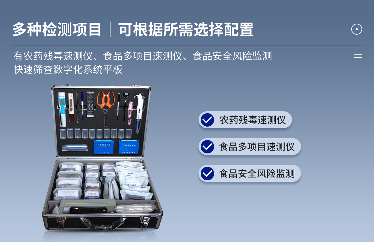 檢測箱預(yù)裝輔助設(shè)備微型電子天平1臺,計(jì)算器1個(gè), 手動(dòng)可調(diào)式移液器1把,移液頭10支,多功能剪刀1把,微型水浴鍋1個(gè),食品中心溫度計(jì)1支,試管架2個(gè),比色管5支,試管5支,濾紙1盒,漏斗4個(gè),藥勺3個(gè),250ml量筒和250ml塑料杯各1個(gè),提取罐10個(gè),樣品杯120個(gè),一次性滴管30支,PH試紙1袋。購置說明:檢測箱預(yù)裝輔助設(shè)備中的器材