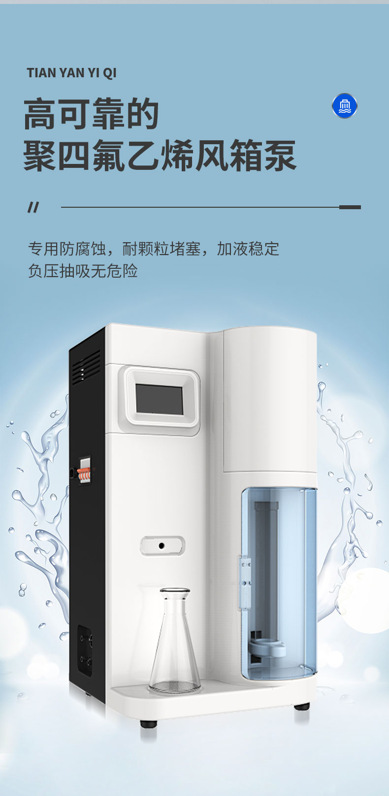用于檢測食品、藥品、土壤、化工、農(nóng)業(yè)、林業(yè)、材料、環(huán)境監(jiān)測等領(lǐng)域氮含量或蛋白質(zhì)含量測定、陽離子交換量測定。