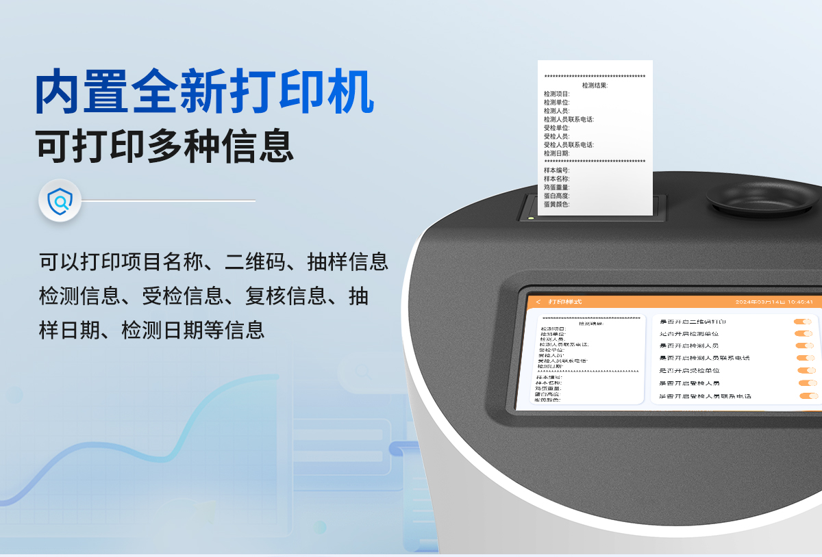 隨著消費(fèi)者對(duì)食品安全問題的日益關(guān)注,雞蛋品質(zhì)檢測成為了保障雞蛋質(zhì)量、維護(hù)消費(fèi)者健康權(quán)益的重要手段。我司生產(chǎn)的雞蛋品質(zhì)檢測儀可通過專業(yè)的檢測項(xiàng)目和方法,進(jìn)行雞蛋的品質(zhì)檢測和分析。