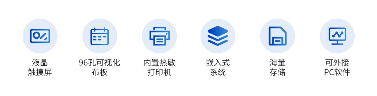 | 1. 內(nèi)置嵌入式系統(tǒng),無需外接電腦即可操作、存儲(chǔ)、打印。 | 2. 全屏顯示96孔整板數(shù)據(jù), 直觀的可視化布板操作界面。 | 3. 便捷的觸摸屏輸入,另可選配外接鼠標(biāo)和鍵盤。 | 4. 測(cè)量模式:?jiǎn)尾ㄩL(zhǎng)檢測(cè),雙波長(zhǎng)檢測(cè),兩點(diǎn)法,動(dòng)力學(xué)法,酶抑制率,終點(diǎn)法、速率法。 | 5. 可選擇吸光度、Cut-Off定性計(jì)算、單點(diǎn)定標(biāo)、折線回歸、線性回歸、指數(shù)回歸、對(duì)數(shù)回歸、雙對(duì)數(shù)回歸、log-logit、冪回歸、四參數(shù)回歸、酶抑制率等計(jì)算方法。 | 6. 在同一板上可進(jìn)行多至12個(gè)不同項(xiàng)目的測(cè)試,并可同一板檢測(cè)定性和定量項(xiàng)目。 | 7. *全面完善的質(zhì)控功能,包含westguard多規(guī)則質(zhì)控,即刻法質(zhì)控等多種質(zhì)控圖及質(zhì)控參數(shù)計(jì)算,具有質(zhì)控報(bào)警功能。 | 8. 具有靈活的定性公式輸入功能,滿足各種相同及不同試劑的不同的參數(shù)設(shè)置。 | 9. 布板和保存導(dǎo)入功能,大幅提高常用項(xiàng)目的測(cè)試效率。 | 10. 可選配外接PC軟件,網(wǎng)絡(luò)化支持,迎合數(shù)字化發(fā)展方向,可定制上傳。 | 11. 全新風(fēng)格彩色圖形化界面,全中文操作系統(tǒng),支持鼠標(biāo)、鍵盤,支持輸入法。 | 12. 光源智能開關(guān),延長(zhǎng)其壽命。 | 13. 提供多種打印方式及多種形式中文報(bào)告,并可定制各式報(bào)告。 | 14. 專用系統(tǒng)維護(hù)菜單,自動(dòng)判斷儀器當(dāng)前狀態(tài)及性能指標(biāo),并可打印相關(guān)數(shù)據(jù) |
