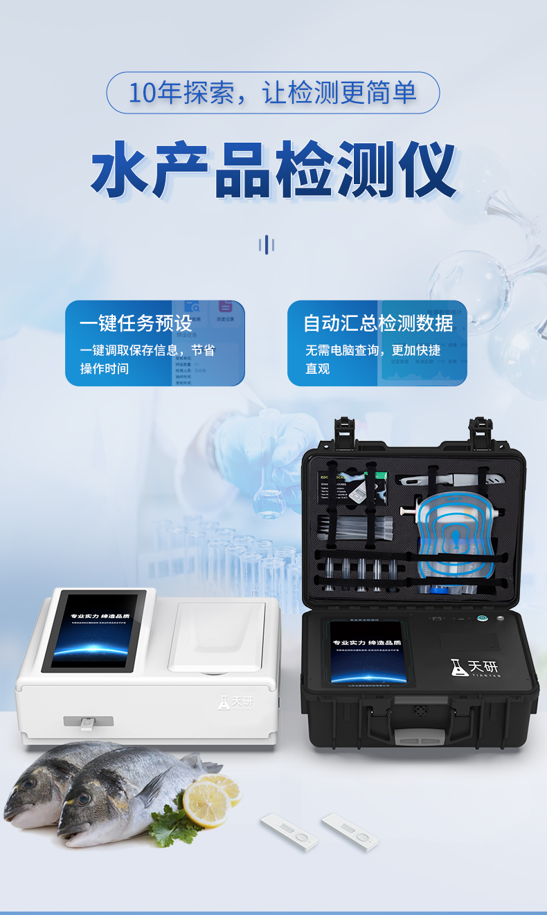 產(chǎn)品用途: 該水產(chǎn)品檢測(cè)儀適用于豬、雞、鴨、羊、牛、牛奶等畜禽肉產(chǎn)品中獸藥殘留,包括抗生素類殘留、瘦肉精激素類殘留和水產(chǎn)品有毒有害物質(zhì)的現(xiàn)場(chǎng)快速篩查定及性定量檢測(cè)。 該多功能獸藥殘留檢測(cè)儀為集成化肉品安全快速檢測(cè)分析設(shè)備,可廣泛應(yīng)用于畜牧養(yǎng)殖場(chǎng)、屠宰場(chǎng)、食品肉產(chǎn)品深加工企業(yè)、食藥監(jiān)局